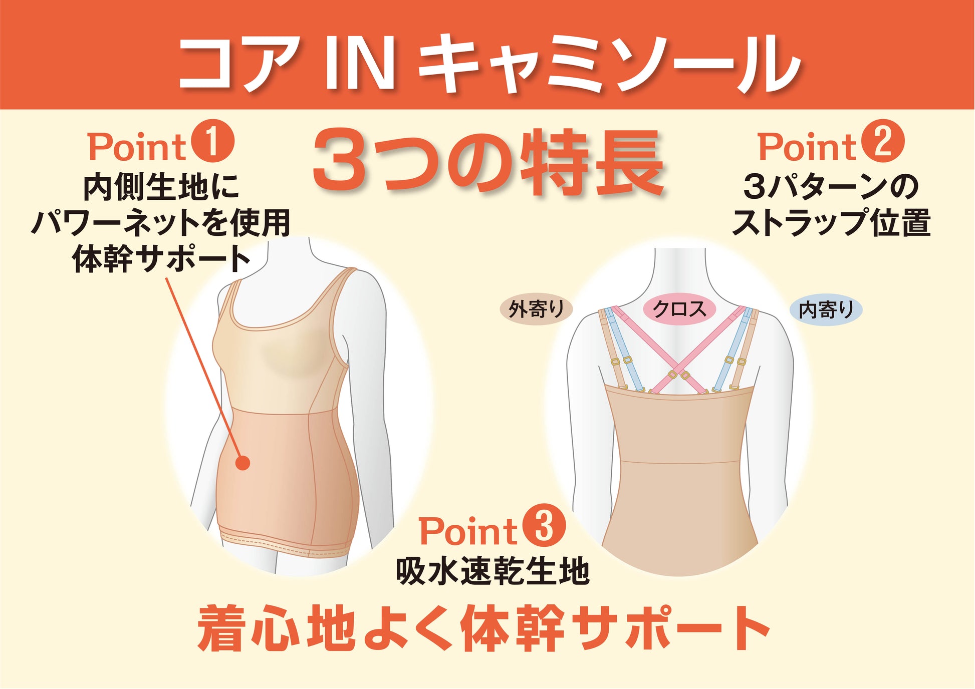 立体裁断&立体縫製のパワーネット(コアサポーター)を内蔵した二重構造キャミソール
